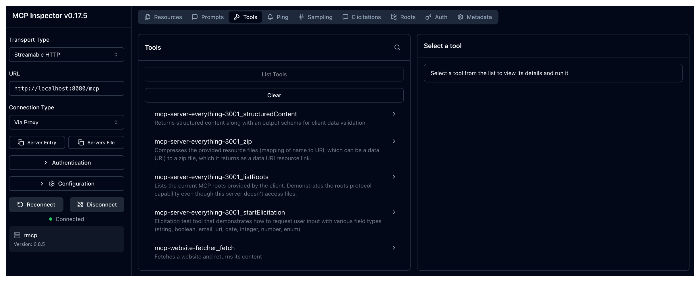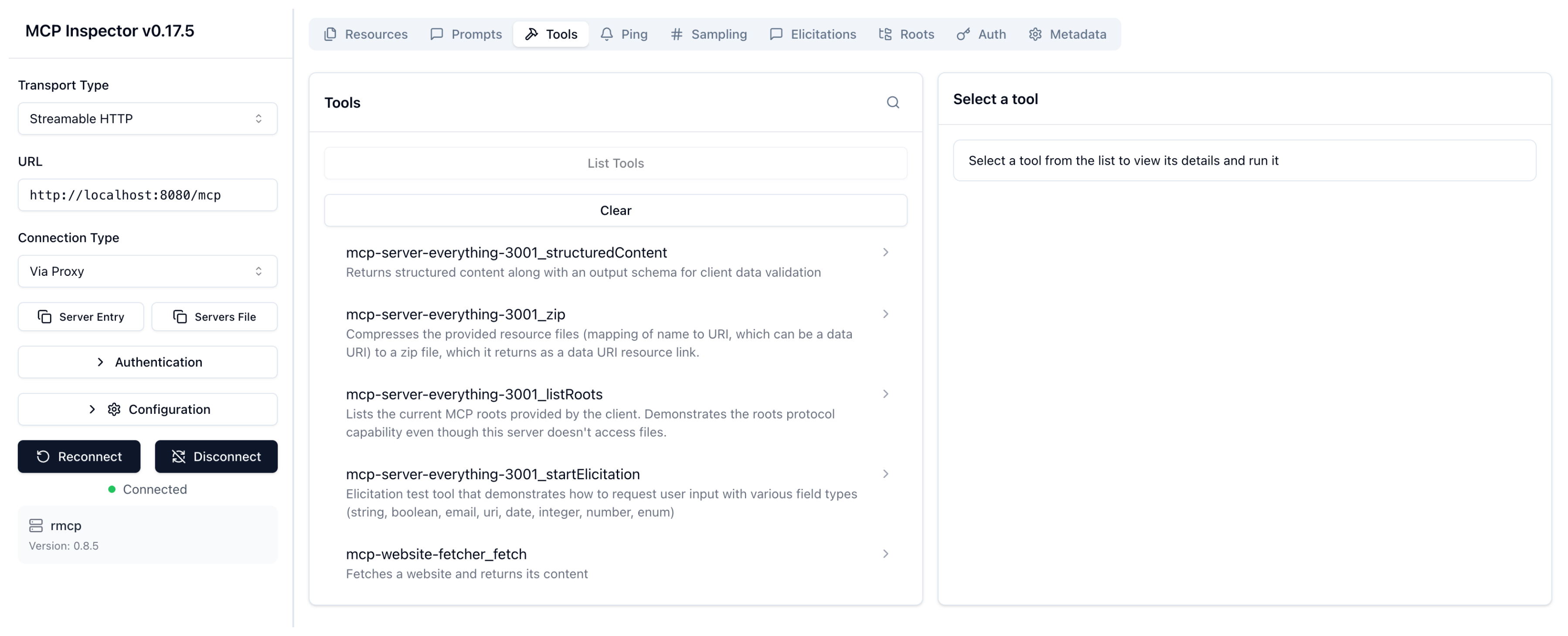 Use the MCP Inspector tool to verify that you can connect to your federated MCP servers through agentgateway.